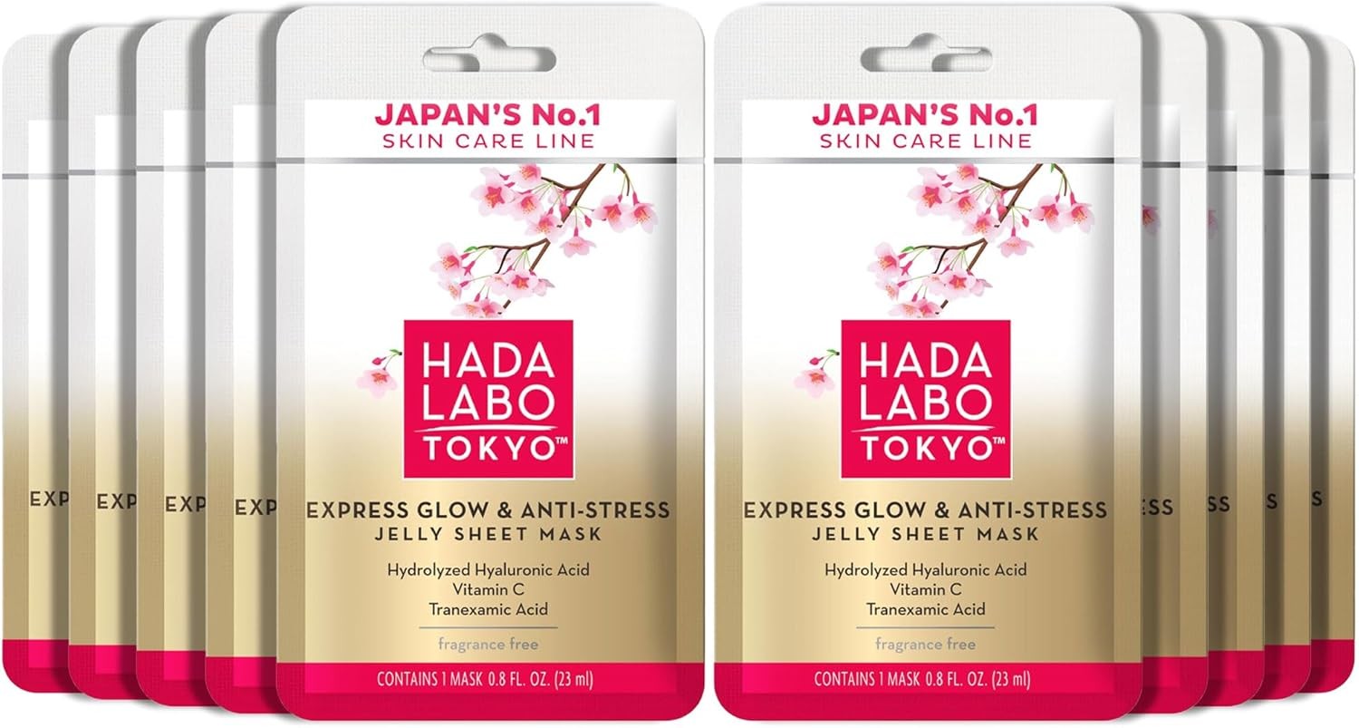 Hada Labo Tokyo - Premium Facial Sheet Masks with Super Hyaluronic Acid, For All Skin Types, (Pack of 10)