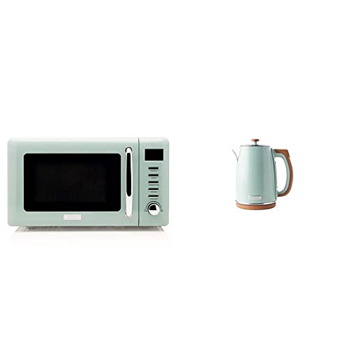 Haden Cotswold Sage Green Microwave - 20ltr Capacity - 800W Microwave - Digital Controls - 60 Minute Timer & Dorchester Digital Variable Temperature Kettle, Fast Boil, 3000W, 1.7Litre, Matt Sage Green