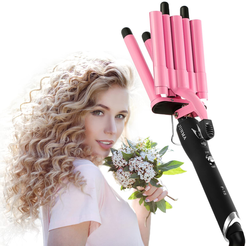 3 Barrel Hair Waver Curling Iron for Voluminous Beach Waves, Fast Heat Up, AntiScald Pink Tool