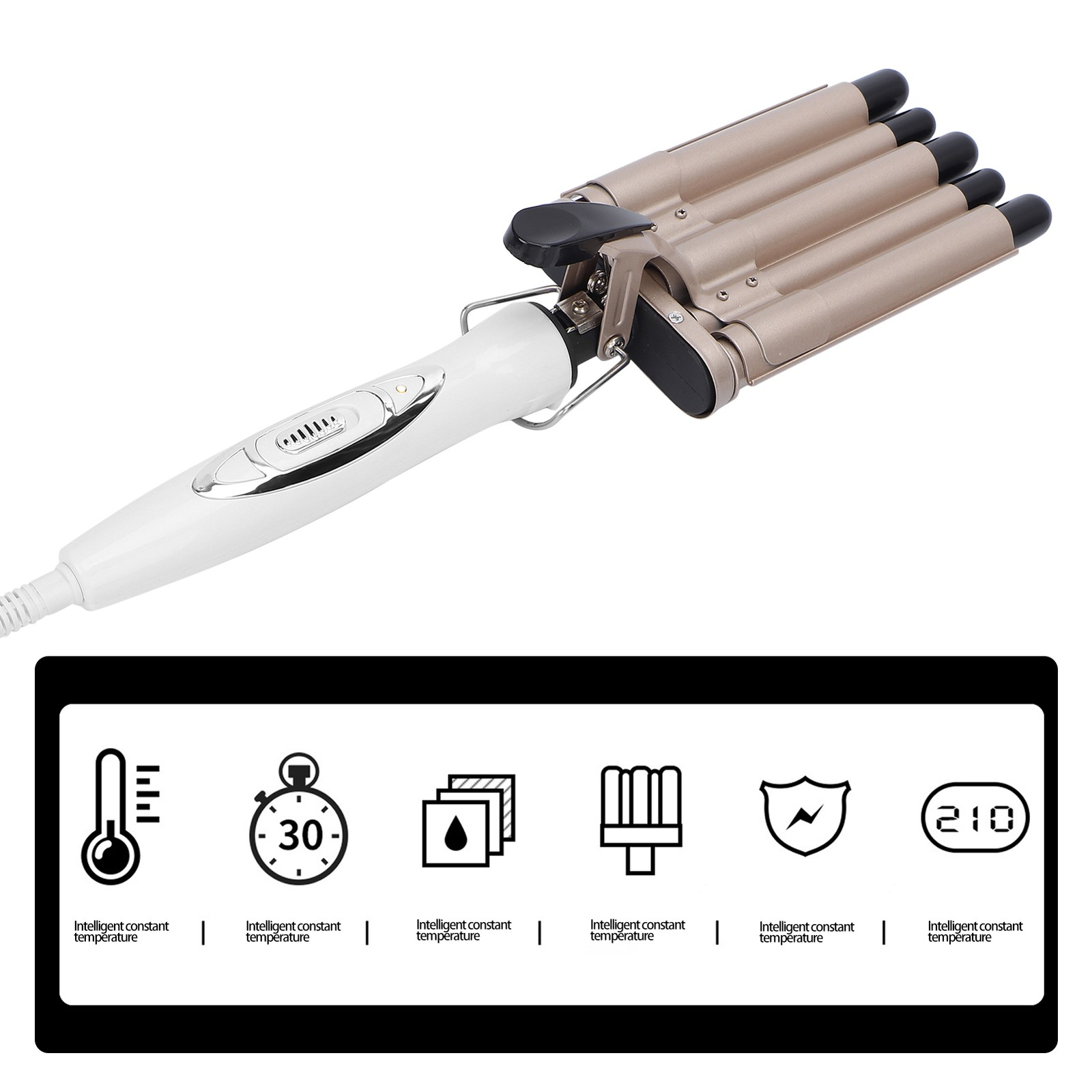 5 Barrel Curling Iron Temperature Adjustable Hair Waver Crimper with LCD EU Plug