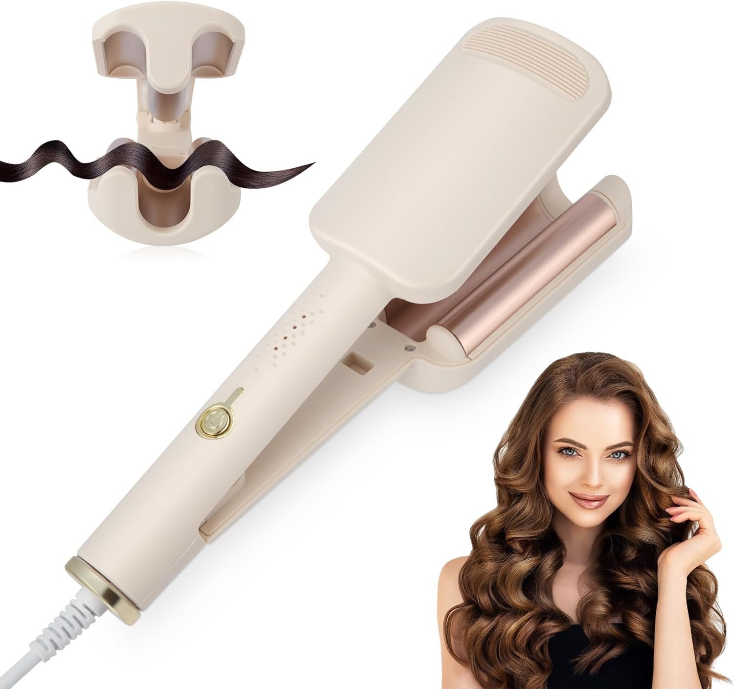 Wave Curling Iron Large Barrel Hair Waver for Loose Curls with Fast HeatUp Adjustable Temp Auto ShutOff Beige