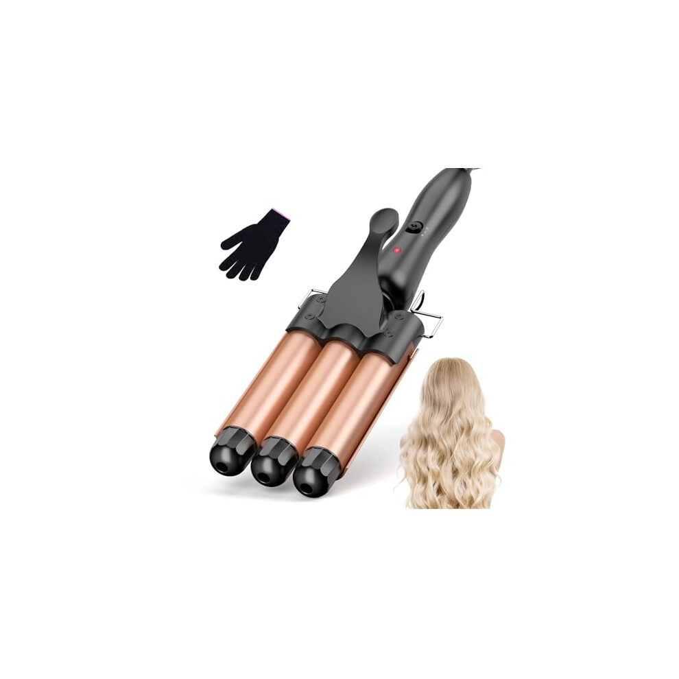 3 Barrel Hair Waver 25mm Beach Wave Hair Curler with 2 Temperature Adjustments, Ceramic Curling Iron with Heat-Resistant Glove for Long Medium Short