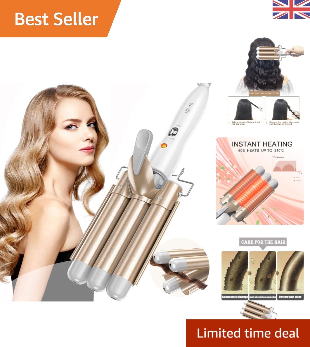 Professional Ceramic Triple Barrel Hair Waver Curling Iron with Rapid PTC Heating and Beach Waves