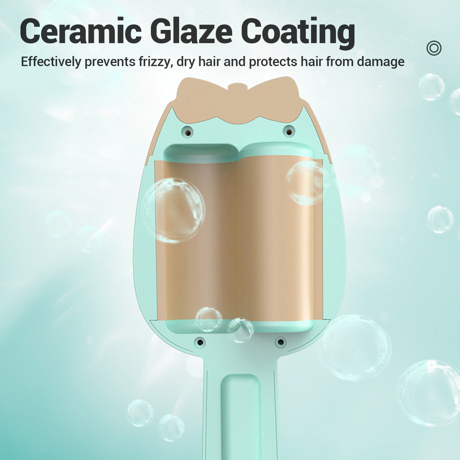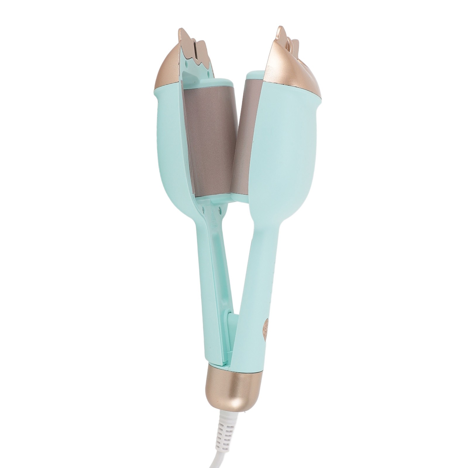 French Wave Curling Iron Crimper, Hair Waver Wand Double Barrel Curler Women Gi