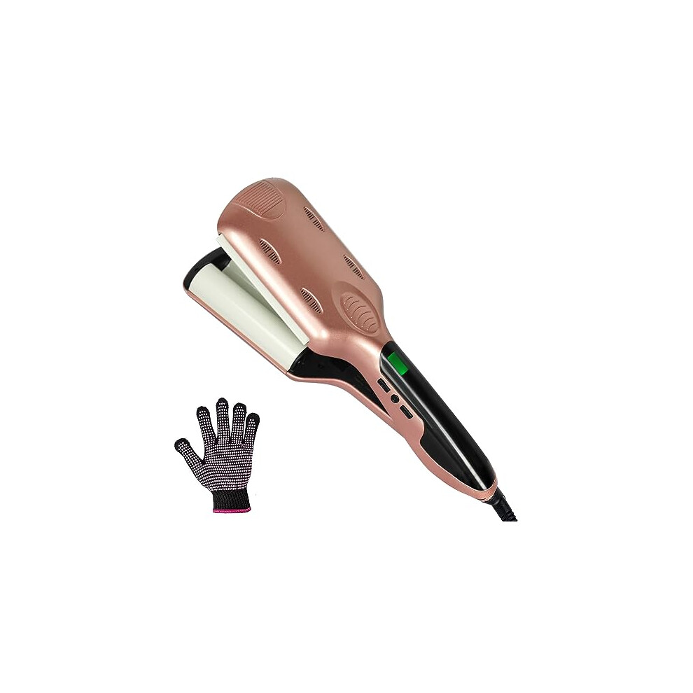 Jumbo 3 Barrel Hair Waver for Deep Waves with Tourmaline Ceramic Curling Iron and LCD Control