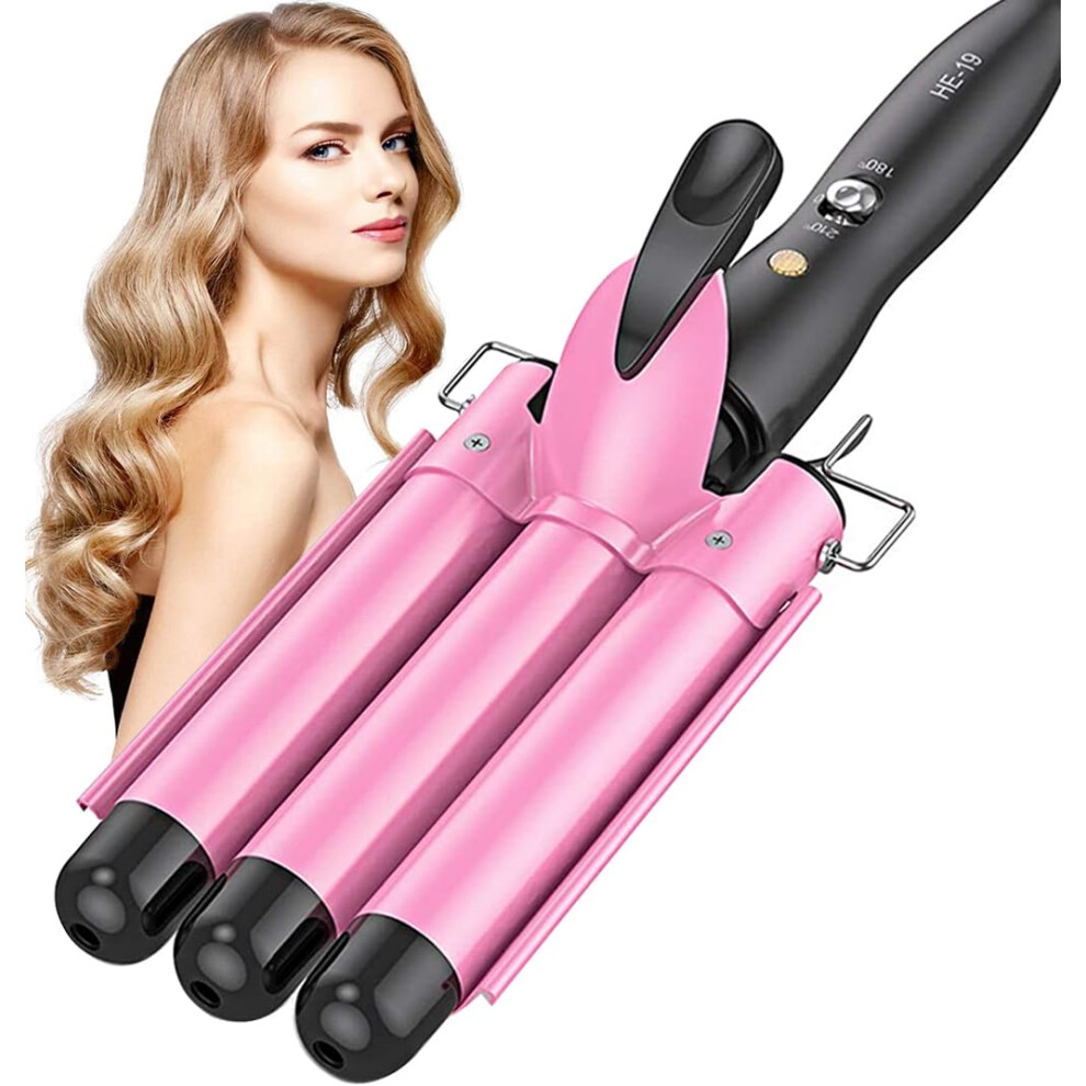 3 Barrel Hair Waver 25mm Curling Iron for Beach and Mermaid Waves Quick Heat Dual Temp Pink