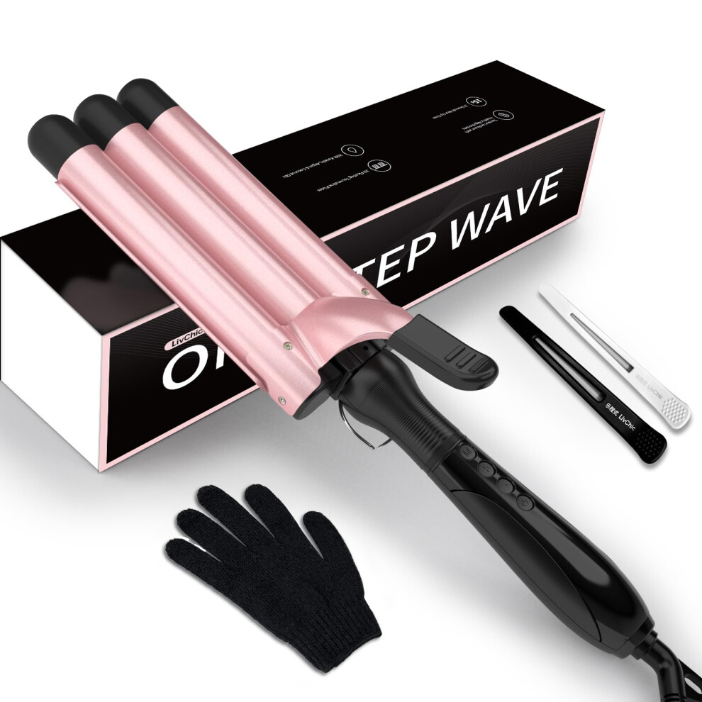 32mm Triple Barrel Hair Waver Curling Iron with Fast HeatUp, Adjustable Temp, Dual Voltage