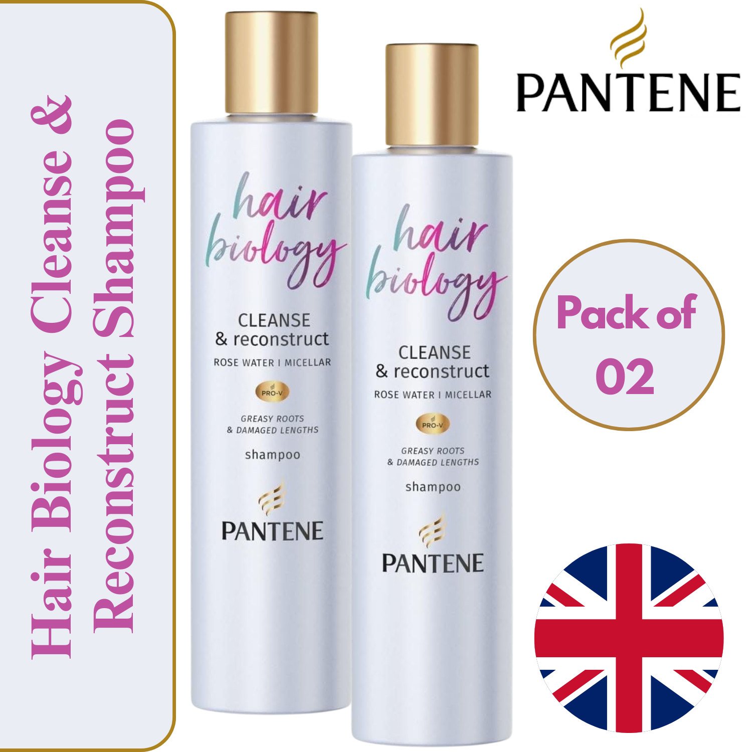 2 X 250ML PANTENE BIOLOGY SHAMPOO FOR DRY DE-FRIZZ & ILLUMINATE HAIR WITH OMEGA9