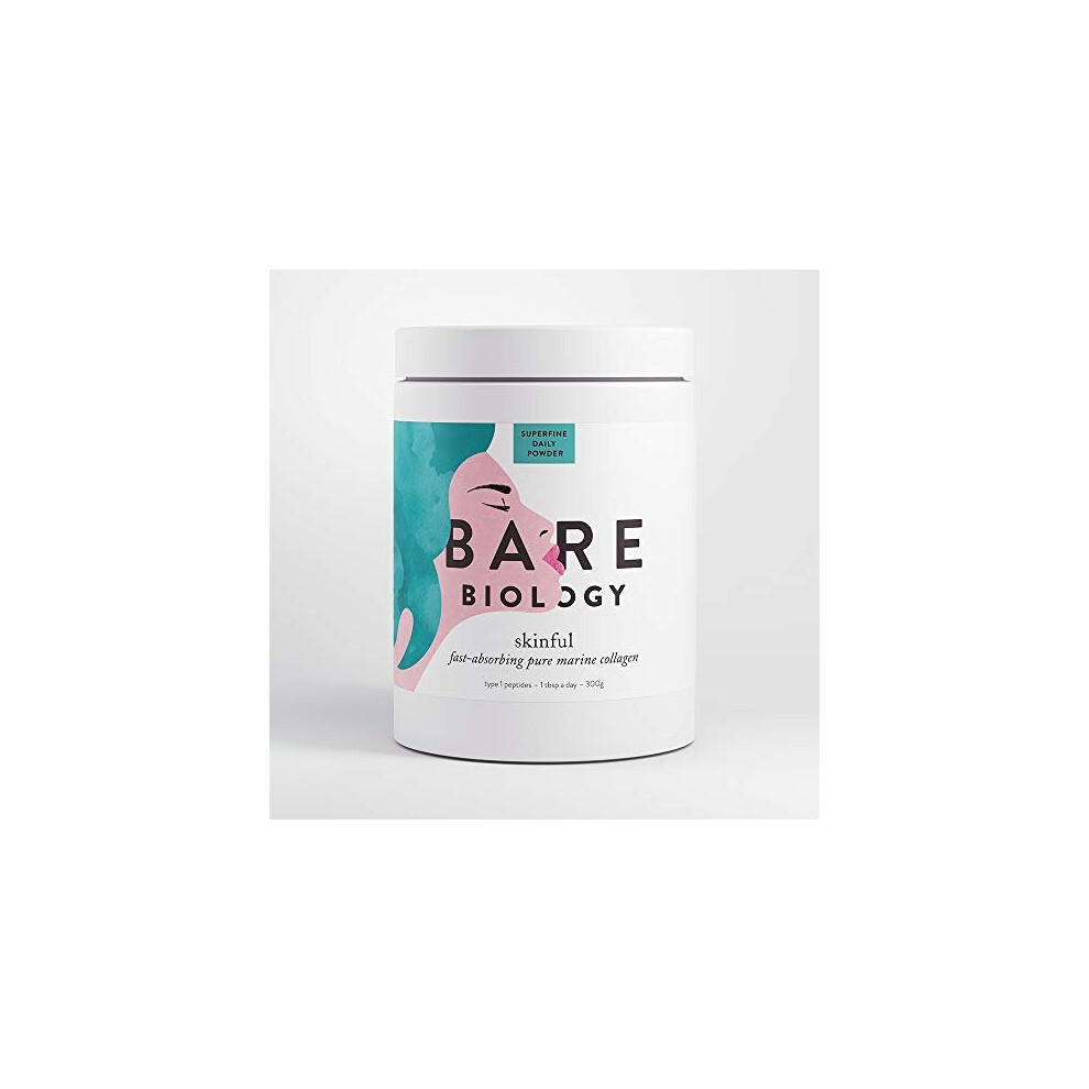 Bare Biology Skinful Pure Marine Collagen Powder, 300g/60 Servings - Optimum Support for Skin, Muscles, Hair, Joints, Fingernails & Bones - Super