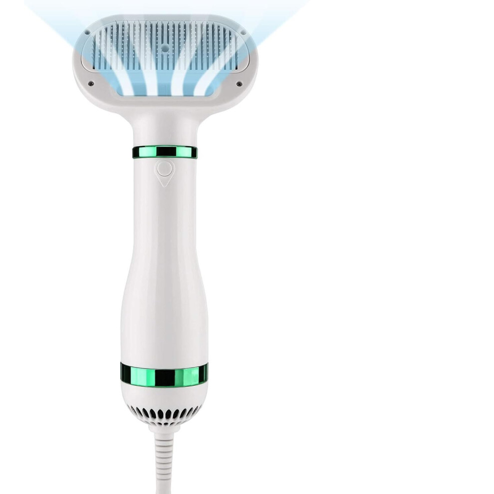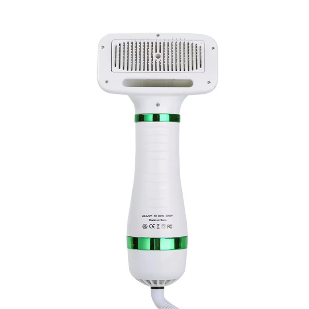 (Green) 3 Heat Settings 2 in 1 Professional Pet Grooming Comb Brush Hair Dryer Blower One Button Hair Removal Dog Dryer
