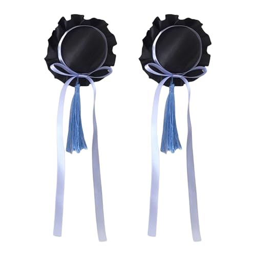 ZYMIADOU Fringed Bowknot Hair Buns Clip For Women Cosplay Party Costume Clip Halloween Headwear Roleplaying Maid Headpiece Decoration