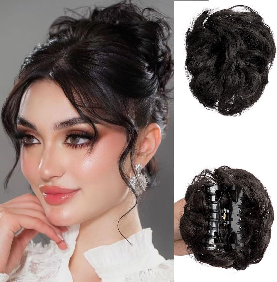Claw Clip Messy Bun Hair Piece Tousled Updo Hair Buns Extension Elastic Hair Ba