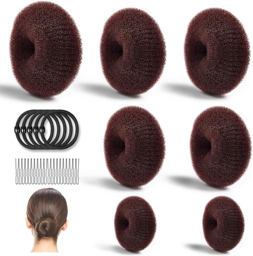 Hair Bun Maker, 7Pcs/4 Sizes Hair Donuts for Buns with 5Pcs Elastic Bands, 20Pc