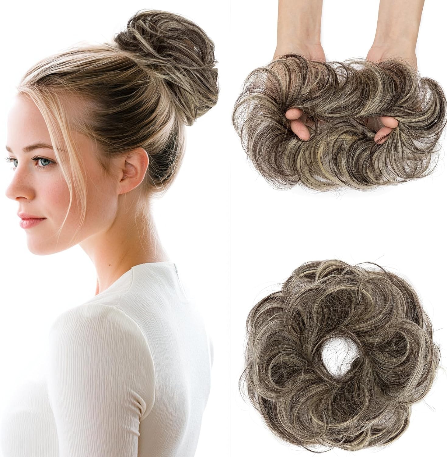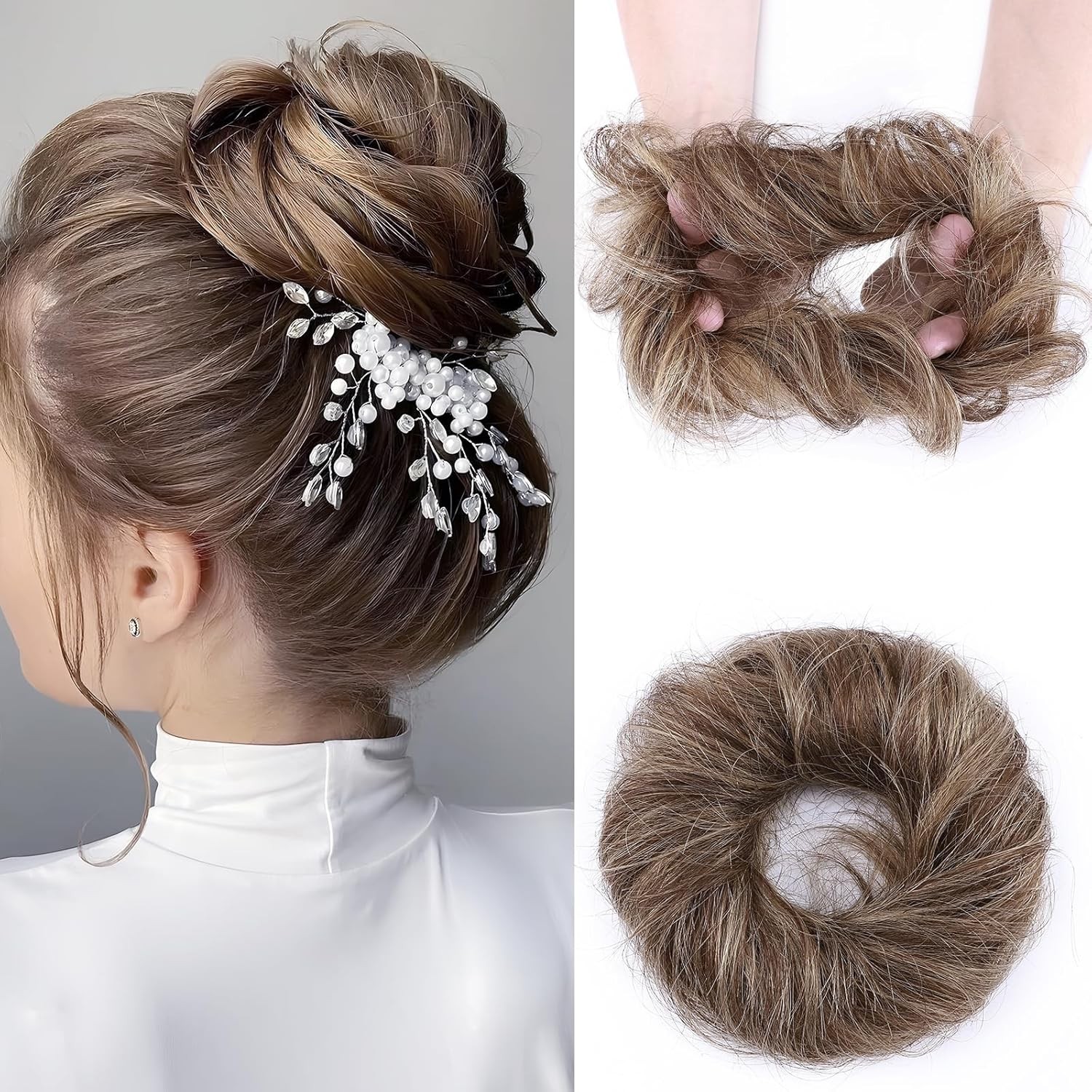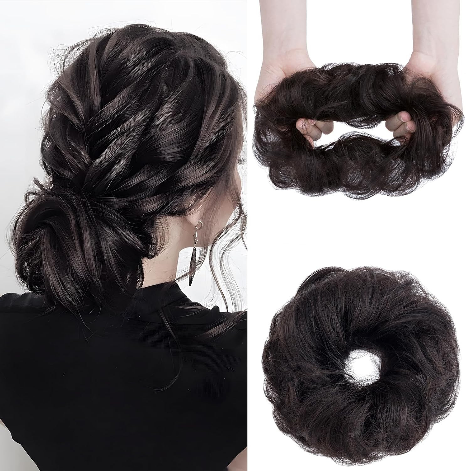 Elailite Real Human Hair Curly Messy Hair Buns - Updo Scrunchies Hair Extension