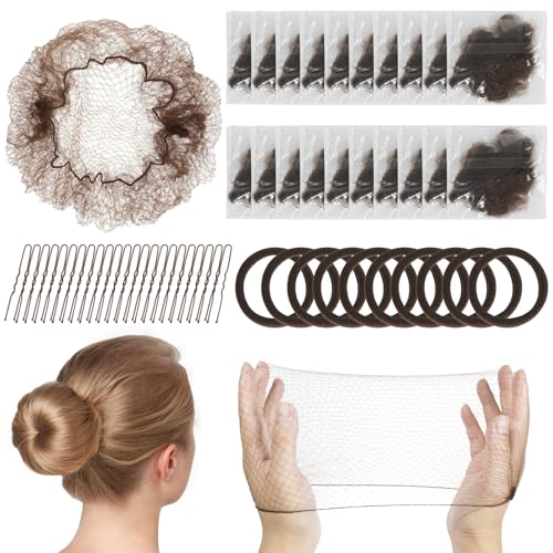 110 Pcs Hair Nets for Buns Set Incluede 50 Invisible Bun Nets Brown with 50 U-Shape Bobby Pins and 10 Bobbles for Ballet Dancers for Ballet Dance Nurse