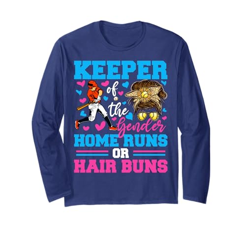 Keeper of The Gender Home Runs Or Hair Buns Reveal Party Long Sleeve T-Shirt