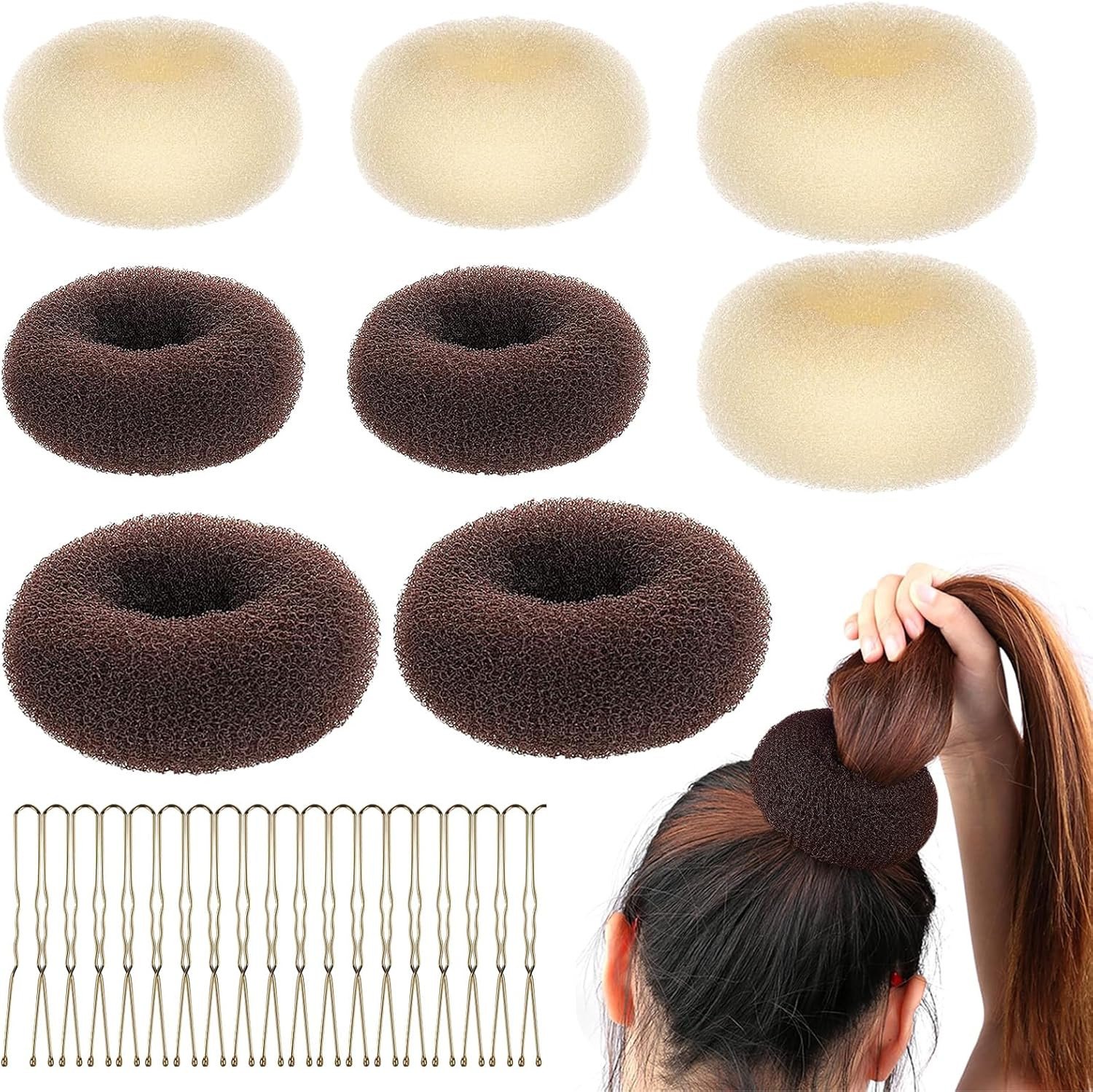 Ninnyi 28 PCS Hair Bun Donut Sets, 8 Hair Doughnuts for Buns with 20 Hair Pins,