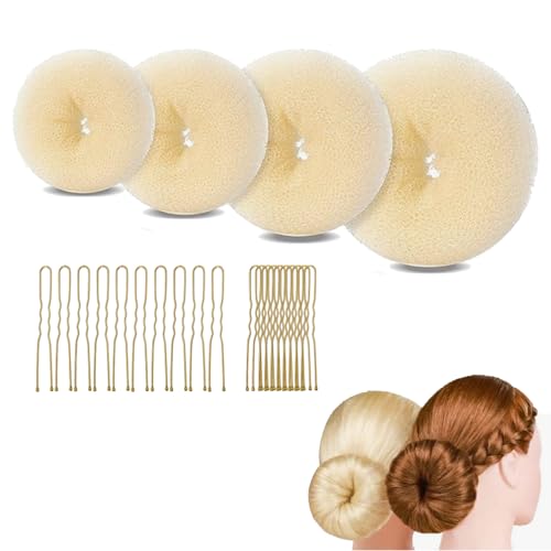 4 Pcs Hair Bun Shaper Set,Ring Style Hair Donuts for Buns With 20 Golden Bobby