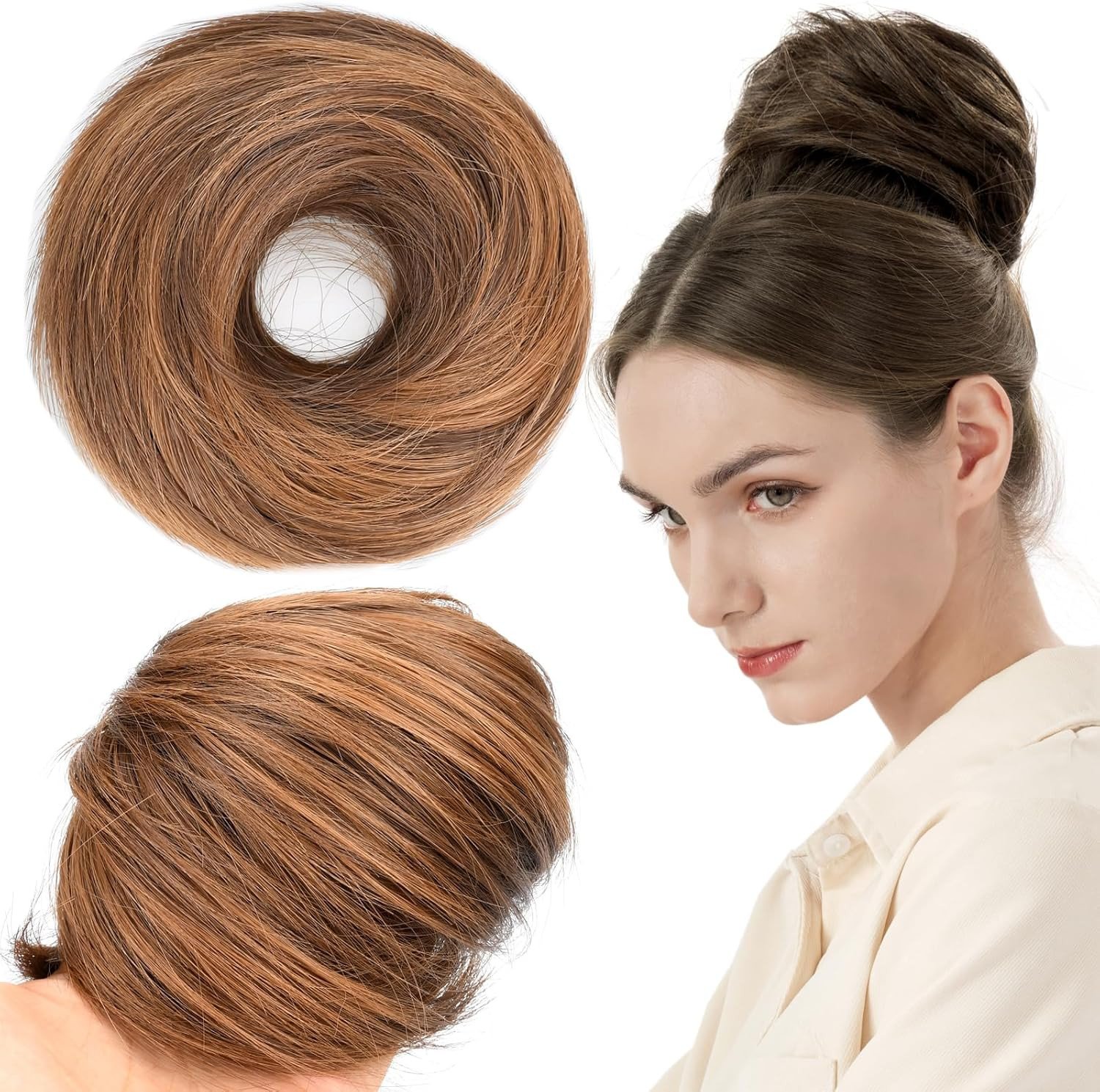 NOLITOY 2pcs Clip Hair Buns with Claw Clip for Women Natural Light Brown Faux Bun Hairpiece Easy Updo Ponytail Extension for Volume and Fullness Comfortable All-day Wear