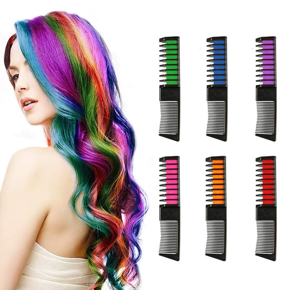 Temporary Hair Color Comb Set, 6 Washable NonDamaging Hair Chalk Combs for Kids and Adults