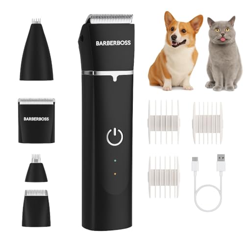BarberBoss Pet Grooming Clipper, Trimmer for Dogs & Cats, Professional Dog Hair Trimmer Kit for Thick & Matted Fur, Cordless Groomer with Ceramic Blade, Waterproof Pet’s Clipper with Nail Grinder