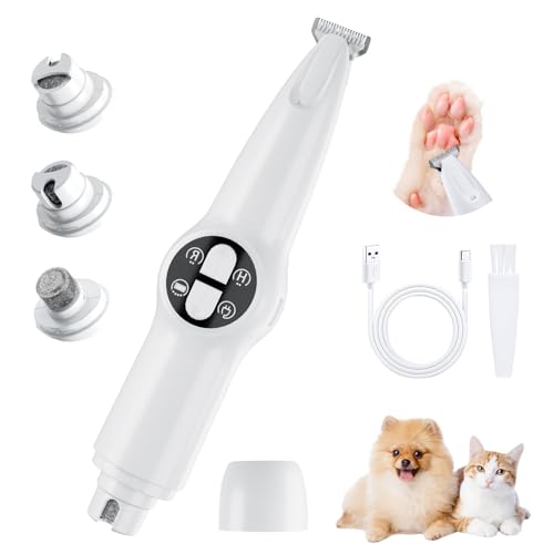GreenZech 4 in 1 Pet Hair Trimmer Paw Claw Nail Grinder Cat Dog USB Rechargeable Cordless Shaver Cutter Low Noise Full Washable Electric Grooming Clipper