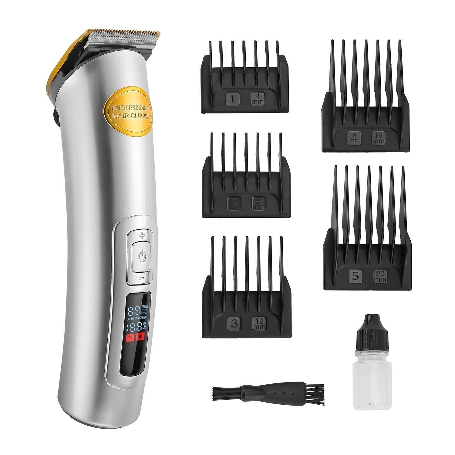 Professional Hair Clipper Digital Beard Trimmer Cordless Rechargeable Silver New