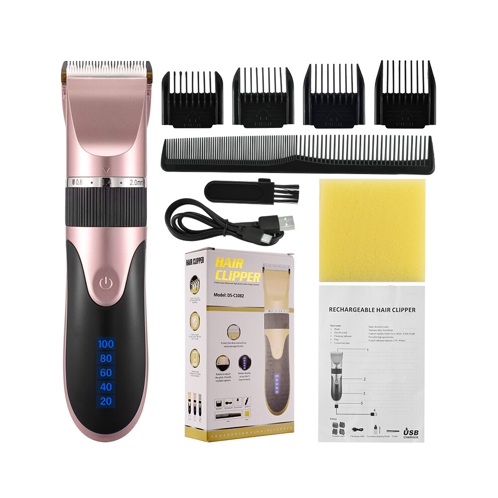 (Pink With Box)Professional Hair Clipper Men's Barber Beard Trimmer Rechargeable Hair Clipper