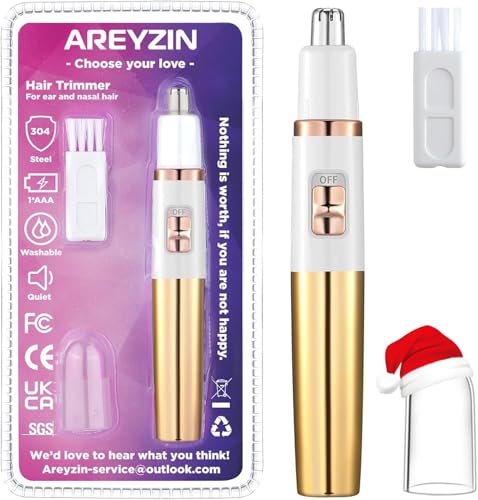 Ear and Nose Hair Trimmer for Women Nose Hair Clipper Professional Painless Noses Trimmer Ladies Eyebrow and Facial Hair Trimmer Battery-Operated, Waterproof Dual Edge Blades for Easy Cleansing