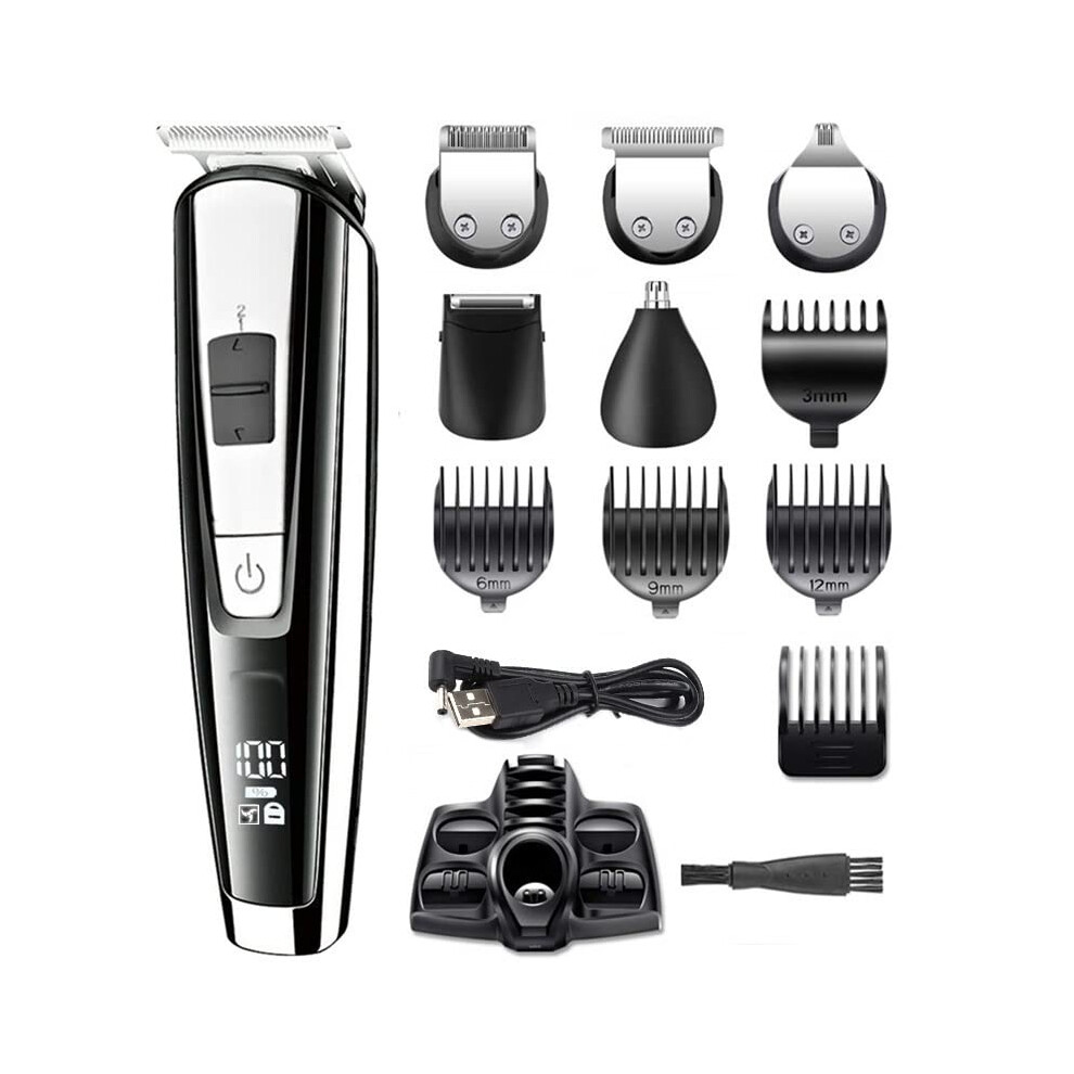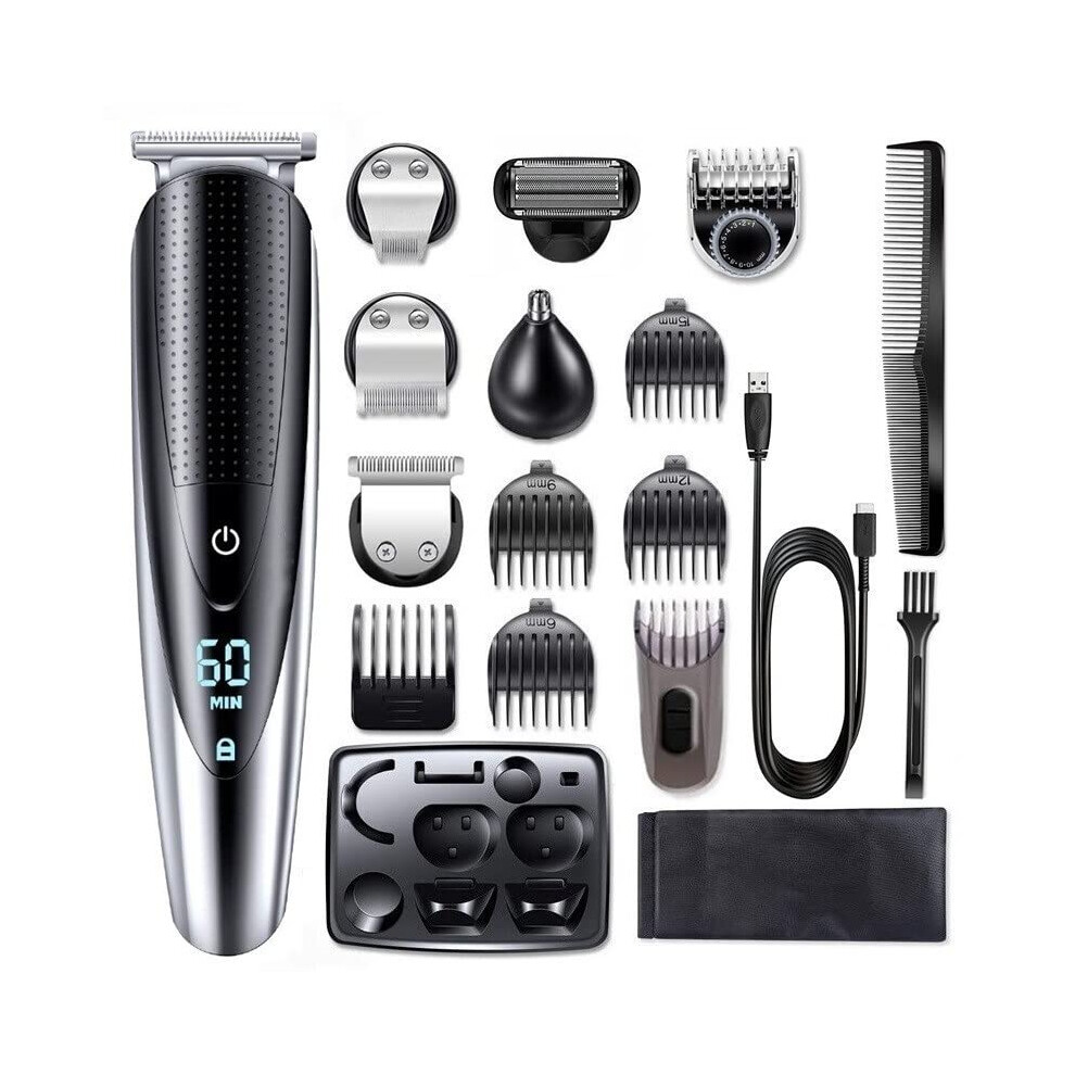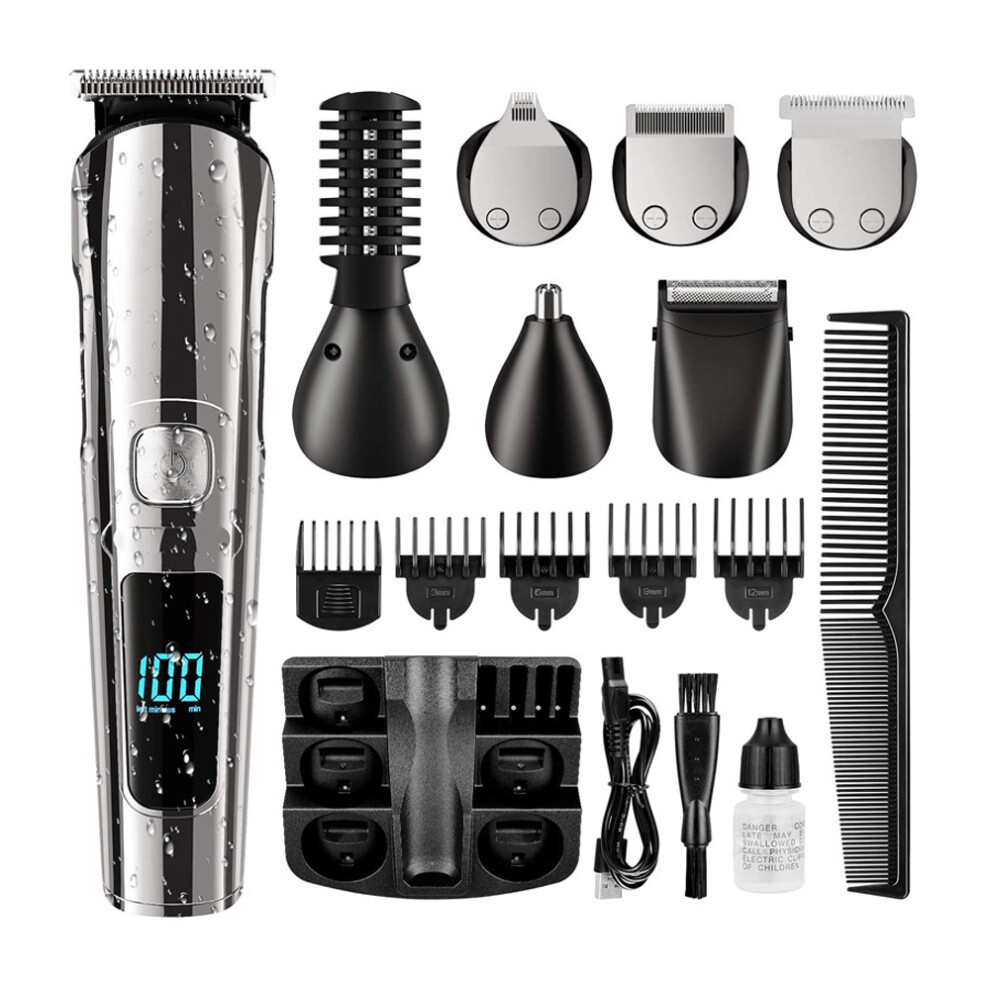 Rechargeable Men's Grooming Kit, Multi-functional Hair Clippers, Waterproof Wet & Dry Use, Double Self-sharpening Blades, Ergonomic Design, Portable