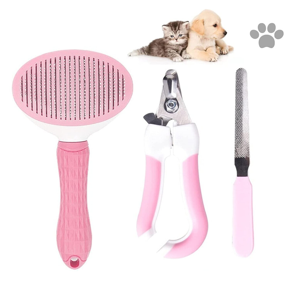 Pet Grooming & Deshedding Tool Kit, Pain-Free Self Cleaning Massage Particles Hair Brush, Safe Nail Clippers, Effective Nail File, Grooming Brush for