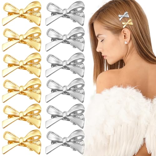 12PCS Metal Side Bang Bow Hair Clips for Women,Mini Cute Bowknot Hair Claws,Small Hair Bows, Tiny Bows for Hair, Mini Gold Hair Clips, Cute Simple Bow Hairpins Barrettes Fashion Party Hair Accessories