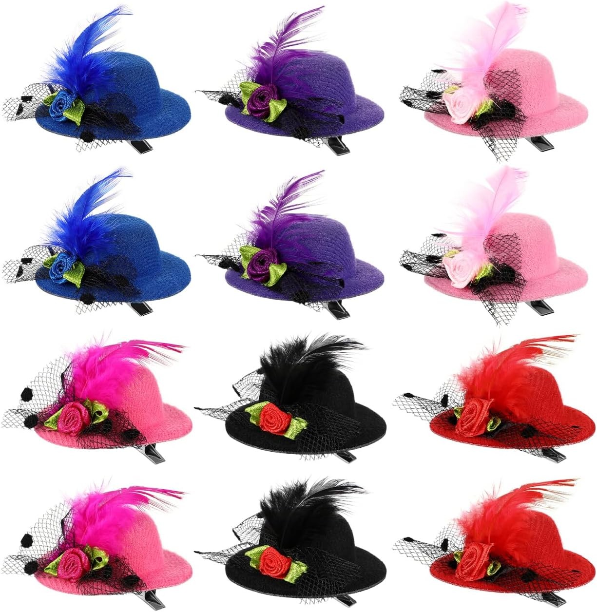 jojofuny Headband with Clips, 12 Pieces, Mini Hat Hair Clips, Tiny Tea Party Hats, Hair Barrettes Party Dance Children's Hair Accessories (Random Colour) Women's Hats