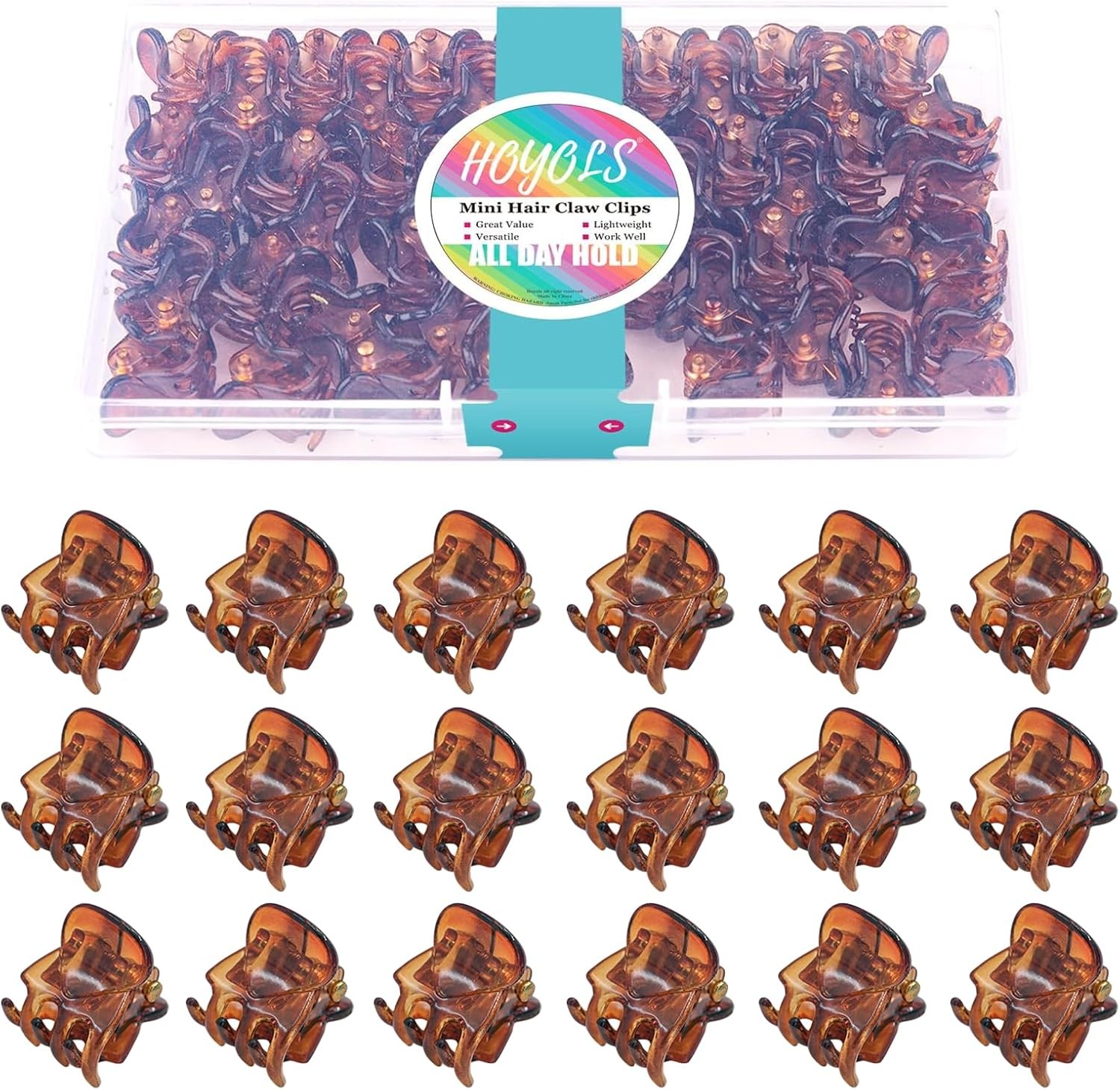 Hoyols 48 Pcs Small Mini Clips for Hair, Tiny Hairclip Brown Claw Clip Strong G