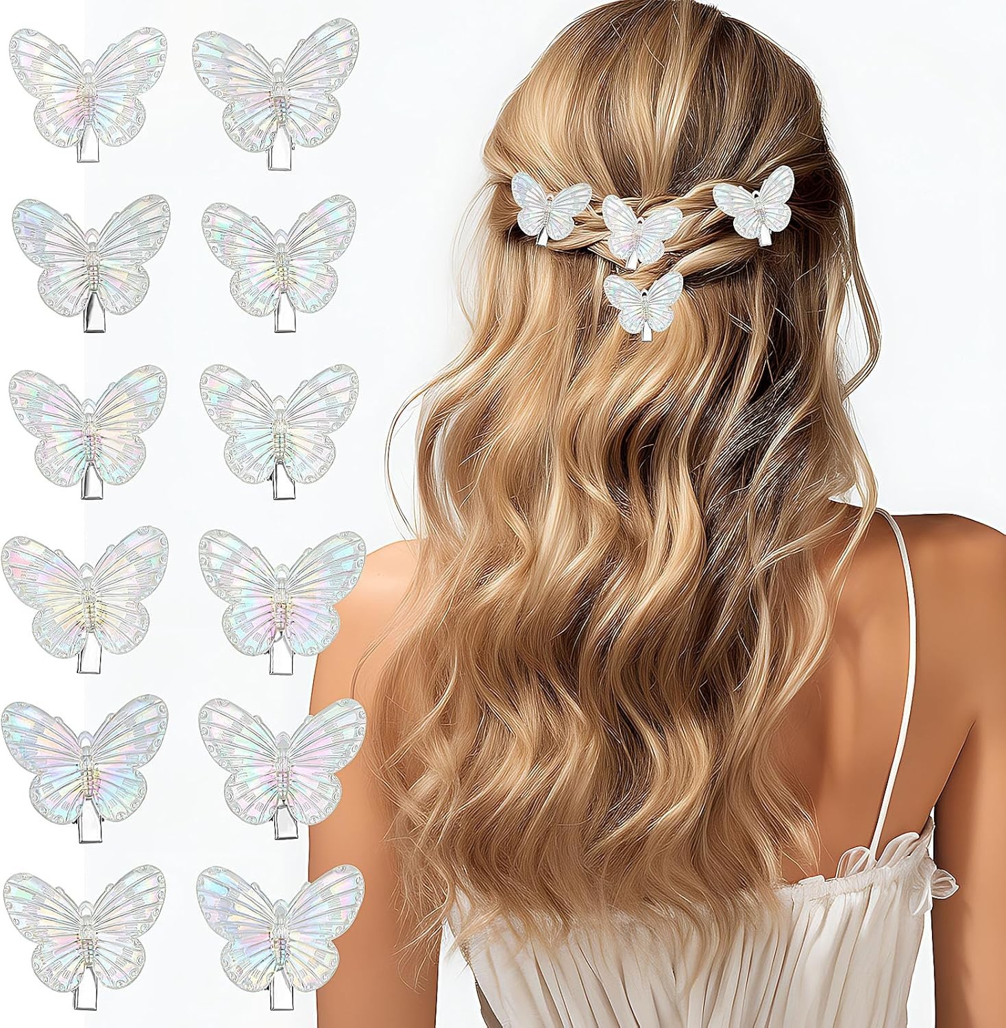 Tyqour 12Pcs Butterfly Hair Clips for Girls Women, Tiny Butterfly Hair Clips, C