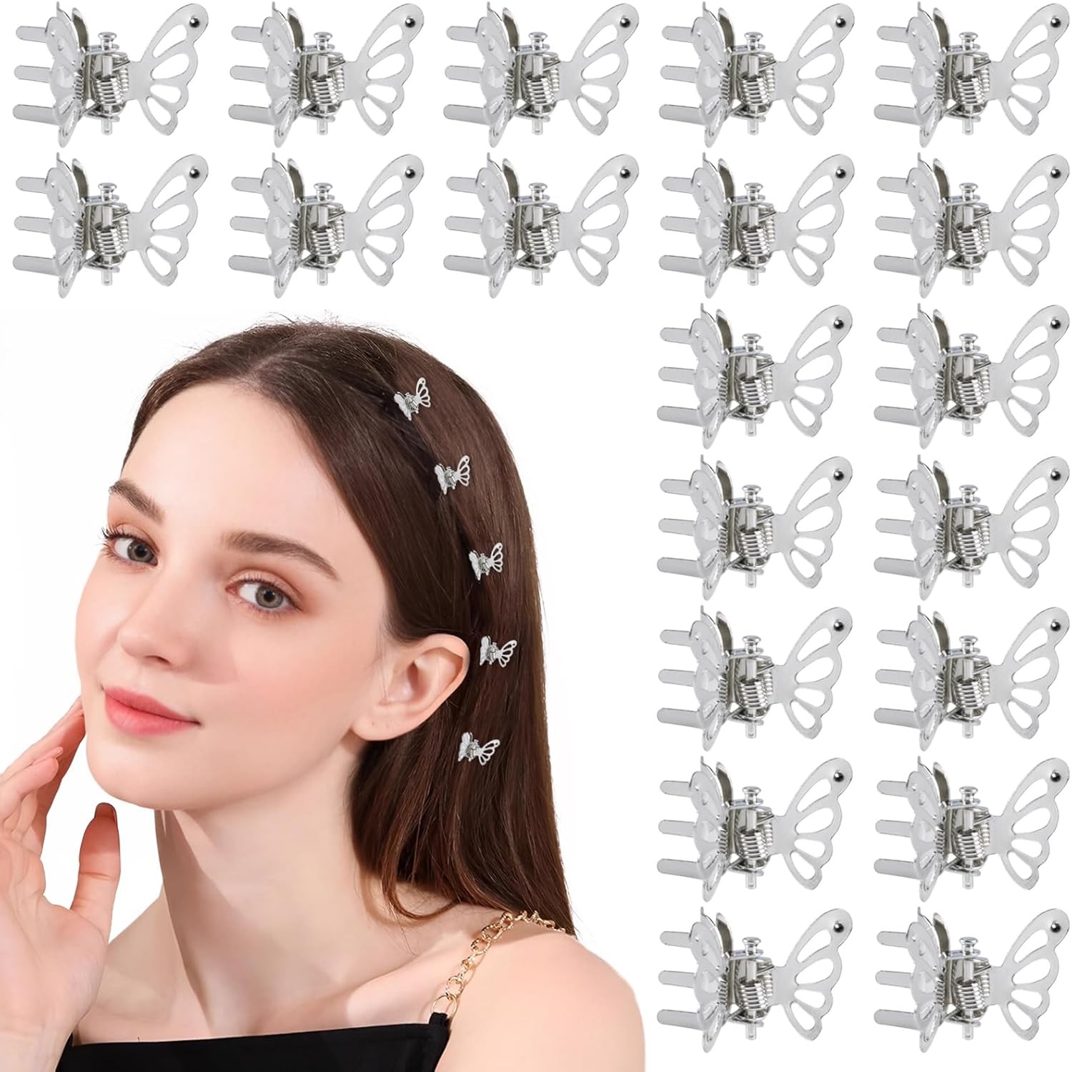 Dalababa 20 Pcs Mini Butterfly Hair Clips, Girls Metal Small Claw Clips, Tiny Cute Hair Accessories for Women Girls Kids - Silver