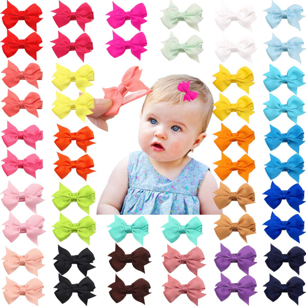 Baby girls snap hair clips, tiny bow, non-slip hair clips for toddlers, fine hair mini bow (40pcs)