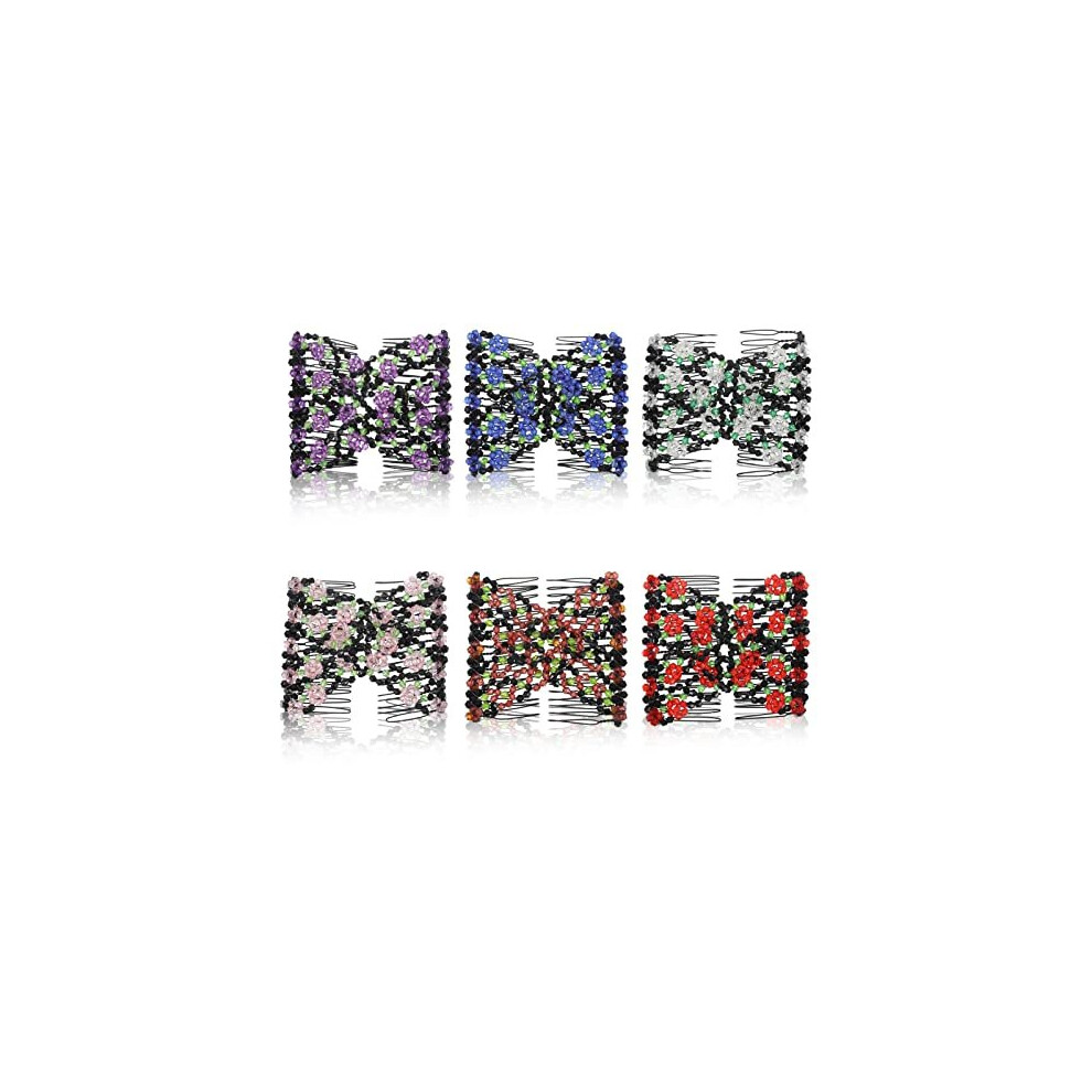 Aethland 6 Pieces Magic Hair Comb Elastic Beaded Hair Clips Women Stretchy Bride Double Slides Hairpins Combs for Women Ladies G