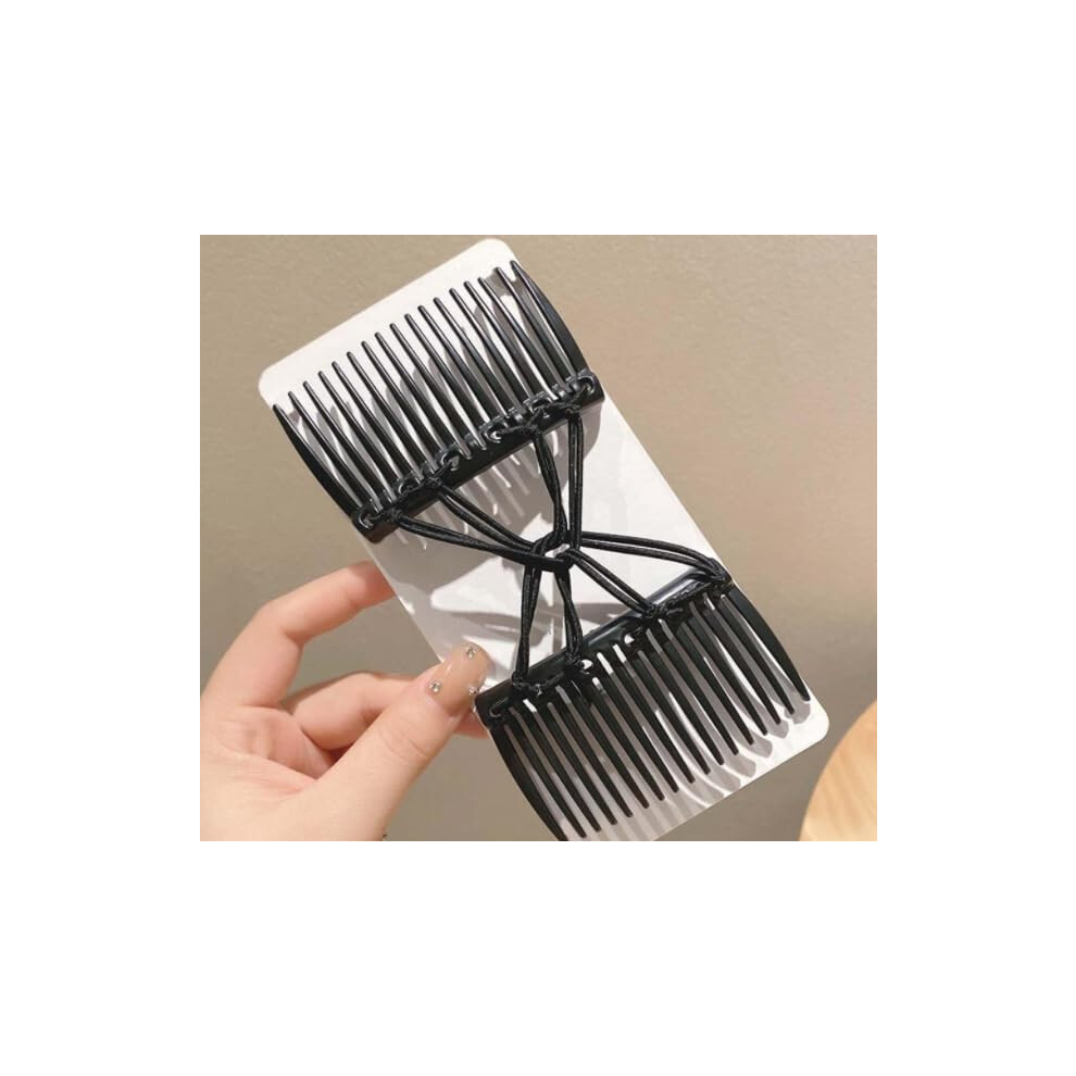 Black Adjustable Magic Hair Clip Combs Stretchy Double Comb Hair Clip No Crease Hair Pins Double Slides Hairpins Combs Women Hair Styling Magic Hair C