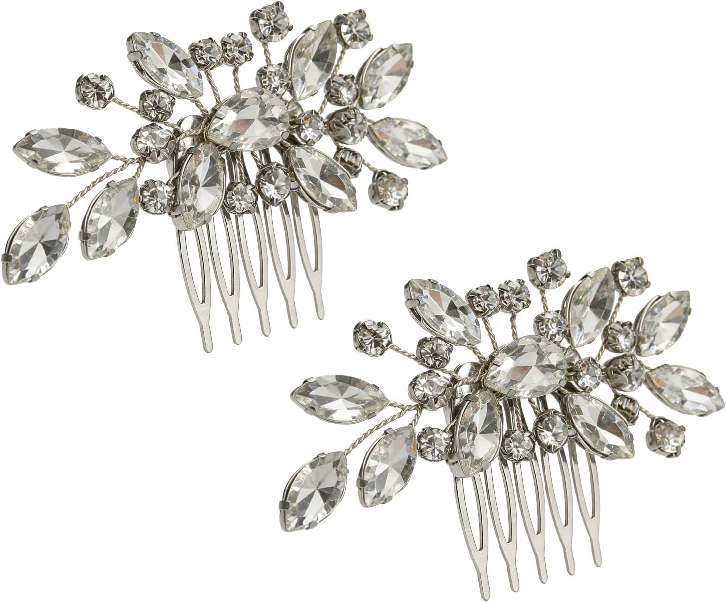 2 Pcs Bridal Hair Accessories,Silver Diamante Hair Comb Slides for Women for We