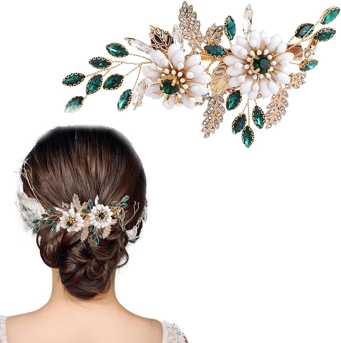 Bride Daisy Flower Wedding Hair Comb Slides,Rhinestone Gold Crystal Hair Pieces