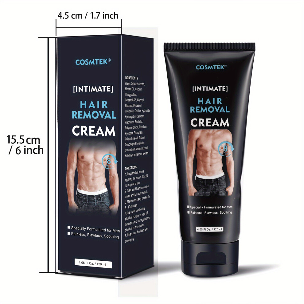 (120ml) Hair Removal Cream For Men, Effective & Painless Depilatory Cream For Unwanted Hair