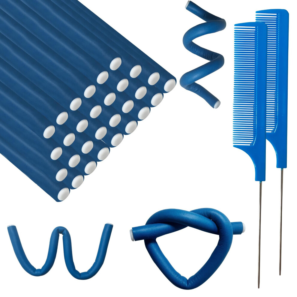 LinaLife 42-Pack Salon Heatless Flexible Hair Rollers Curlers 7"""" Soft Foam Flexi Twist Curling Rods For Short Long Hair Styling Tools