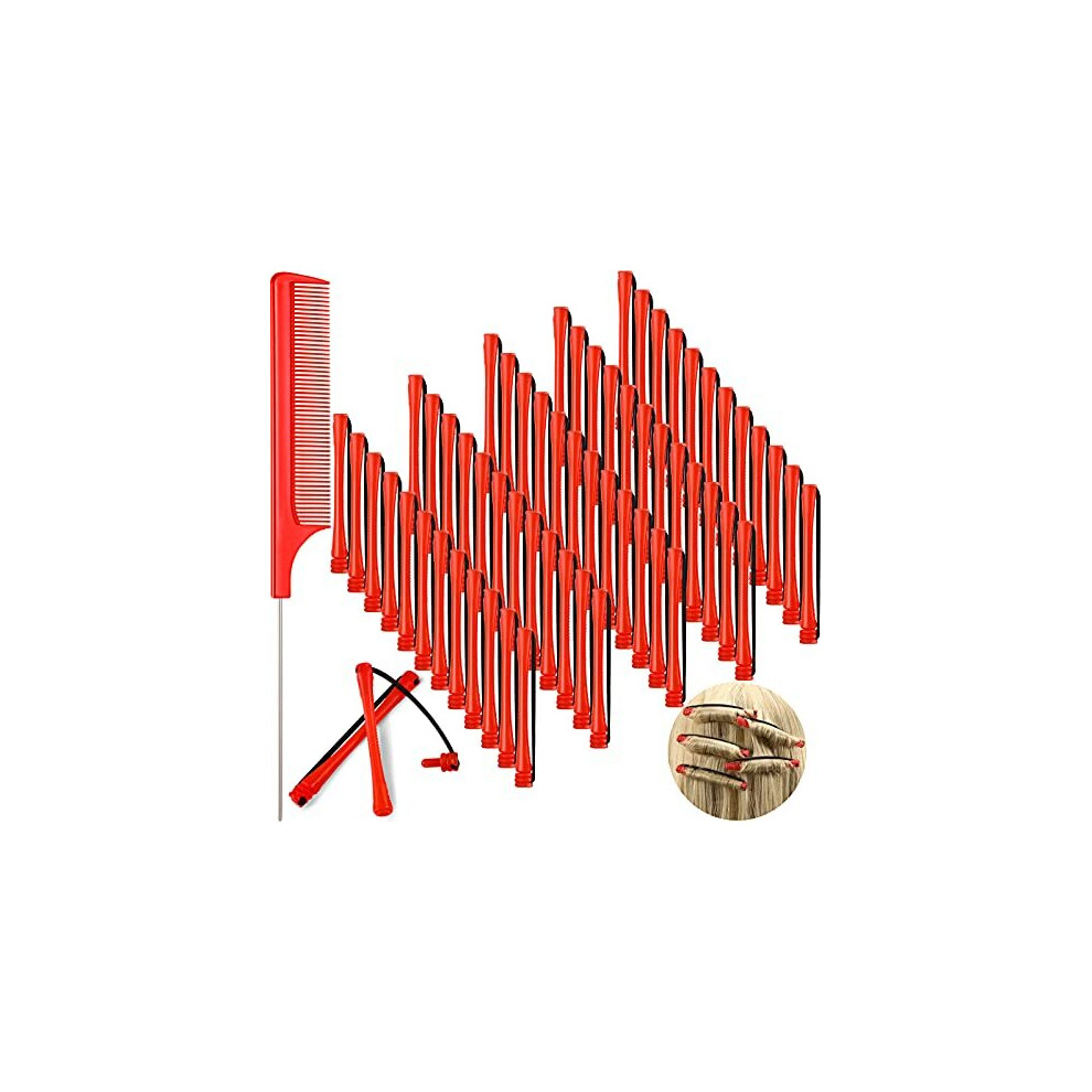 60 Pieces Short Hair Perm Rods Cold Wave Rods Plastic Perming Rods Hair Curling Rollers Curlers with Steel Pintail Comb Rat Tail Comb for Hairdressing