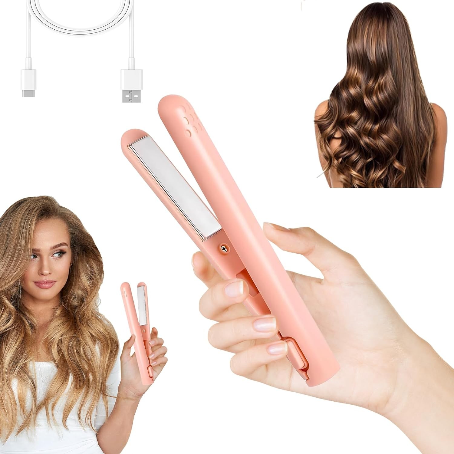 Professional 2 in 1 Straight Curling Iron with Adjustable Temperature, Fast Heating Ceramic Tongs for Short & Long Hair