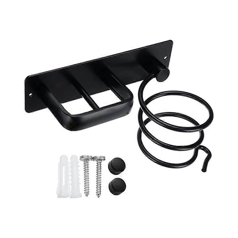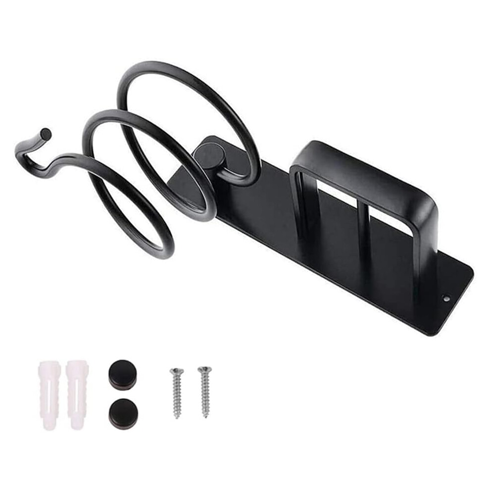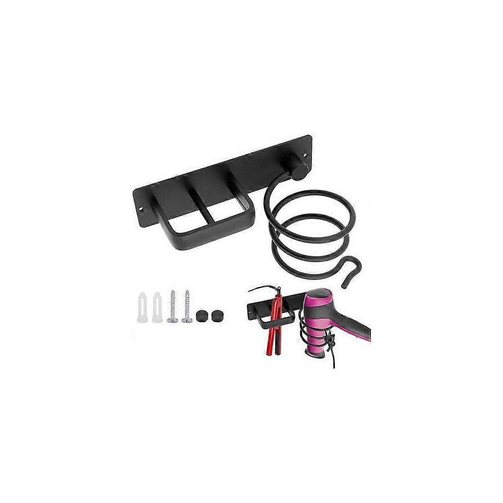 (As show, One size) Wall Mounted Hair Dryer Bracket and Straightener Holder Set Storage Organiser for Bathroom - Black