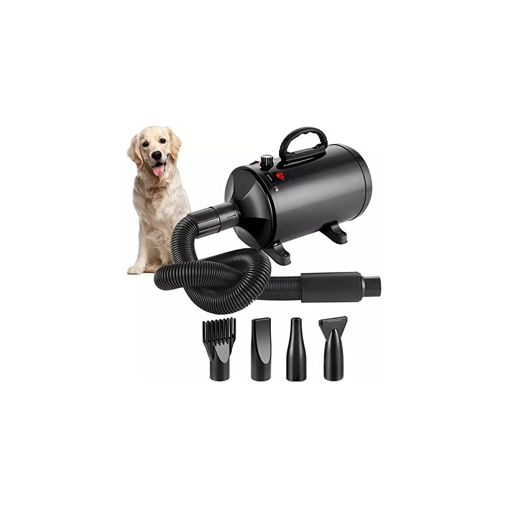 (Black) Dog Hair Dryer Pet Dog Blaster Dryer Dog Grooming Gryer 2800W Low Noise Temperature Heater with 4 Different Nozzles