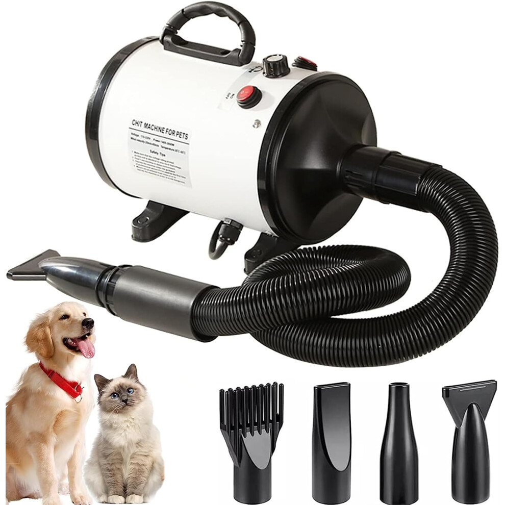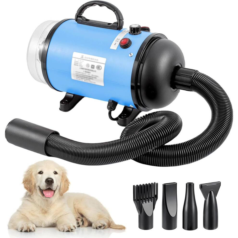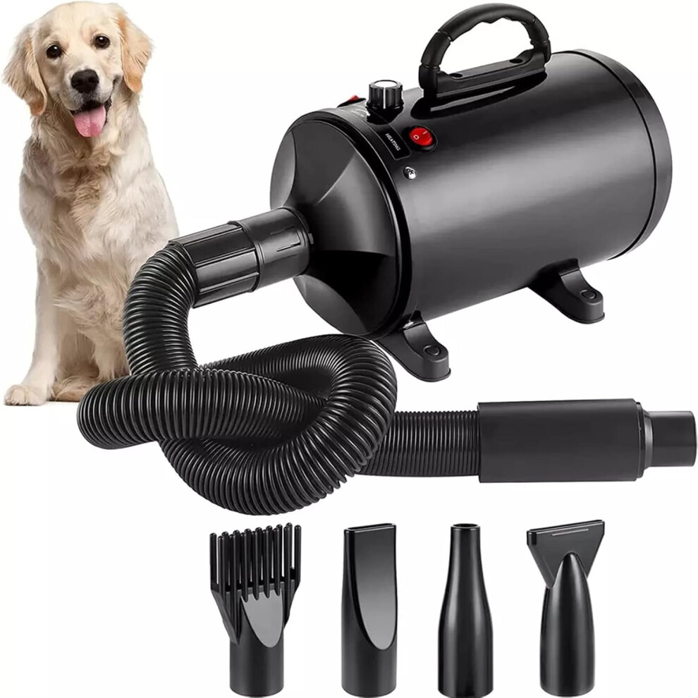 Dog Hair Dryer Blaster, 3200W Pet Grooming Hair Dryer, Dog Grooming Vacuum Blow Dryer, Dog Blower Dryer with 4 Different Nozzles, Stepless Speed