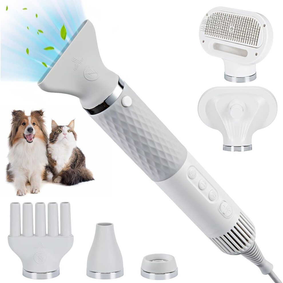 5 in 1 Pet Grooming Hair Dryer, Dog Hair Dryer for Cats Dogs, Low Noise, NCT Intelligent Temperature Control, 3 Wind Speeds