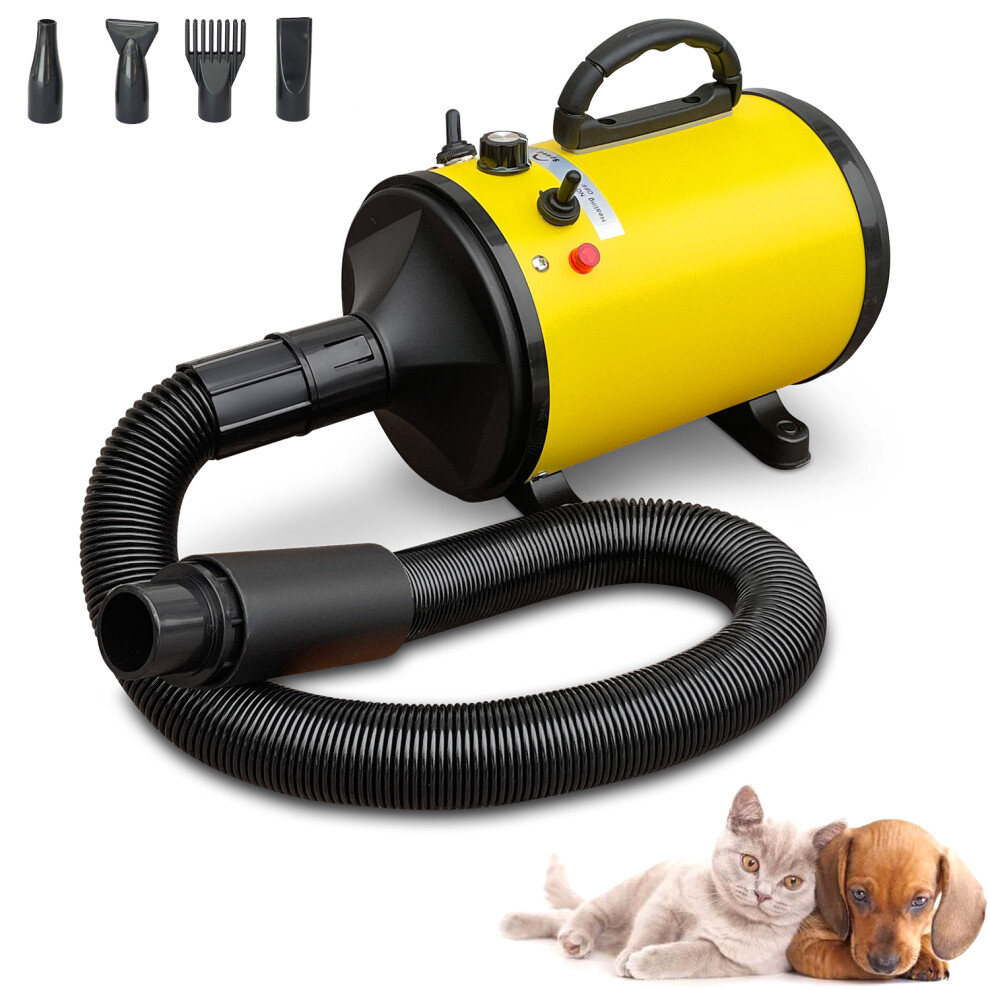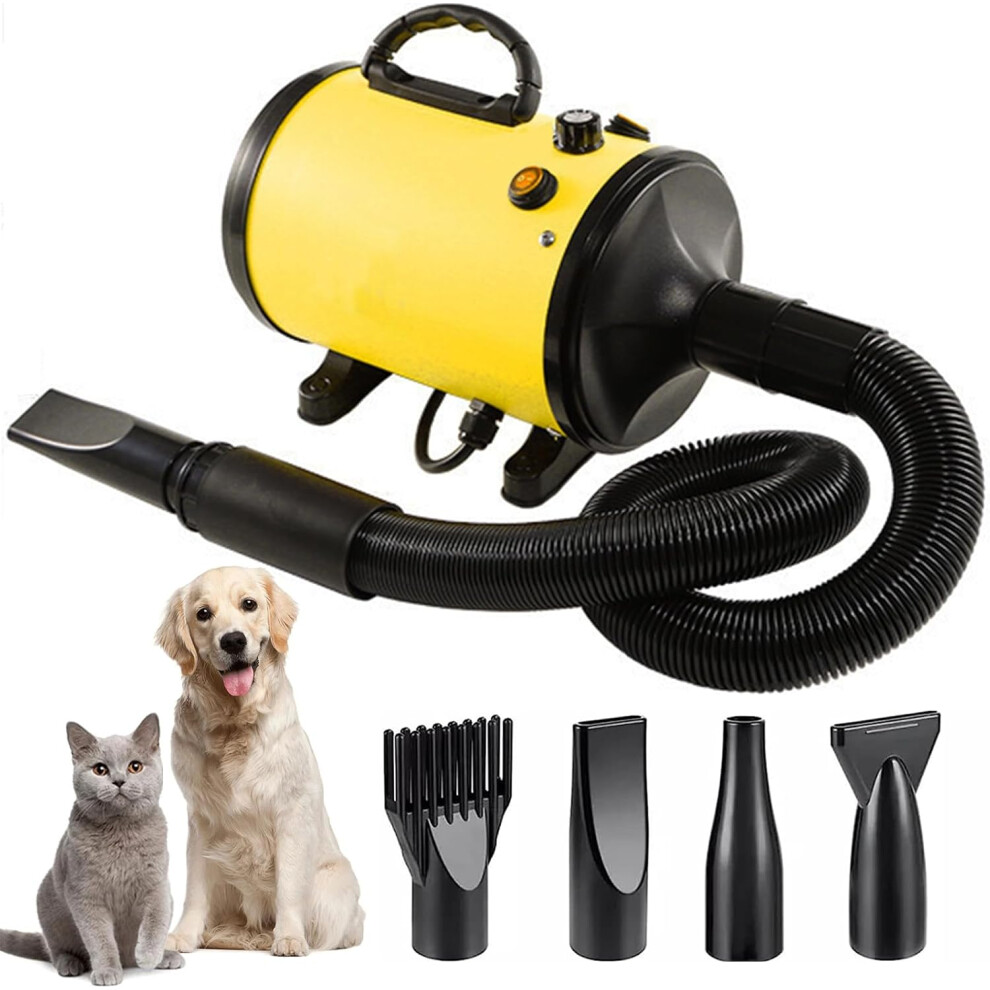 (Yellow) Dog Hair Dryer, 2800W Dog Hair Dryer, Pet Grooming Hair Dryer, Continuously Variable Speed Pet Hair Dryer with 4 Different Nozzles
